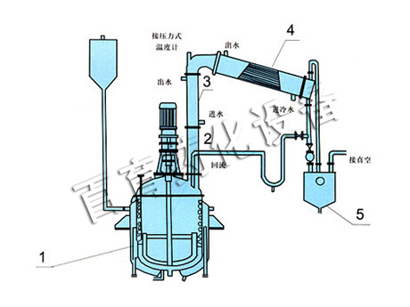 本全套裝置是用于生產(chǎn)不飽和聚酯樹脂、酚醛樹脂、環(huán)氧樹脂、ABS樹脂、油漆的關鍵設備。全套設備由反應鍋、豎式分餾柱、臥式冷凝器、貯水器、溢油槽、管線(對稀釜)等組成,全套設備與物料接觸部分均采用不銹鋼制作。